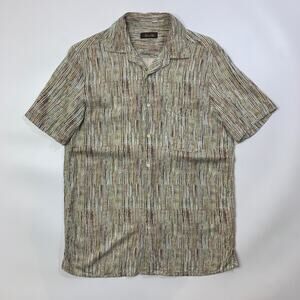 TASSO ELBA SHIRT MEN M MEDIUM MULTI ISLAND PRINT STRIPED SHORT SLEEVE SILK BLEND