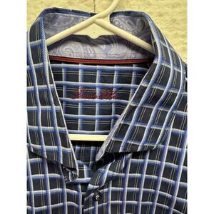 Tasso Elba Shirt Mens L Purple Flip Cuff Button Up Plaid Cotton Dress Preppy