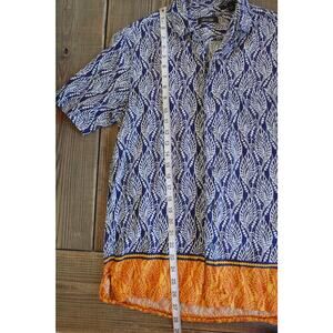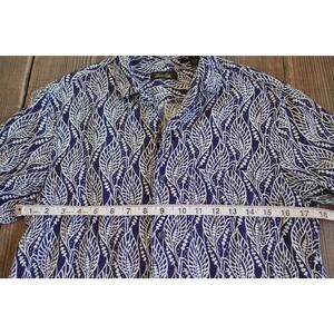 Tasso Elba Shirt Mens Small Blue White Leaf Print Silk Rayon Short Sleeve Casual