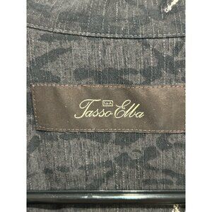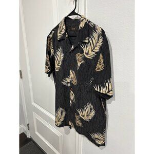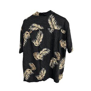 Tasso Elba Silk Button Front Hawaiian Shirt Black Beige Sz Large Feather Print