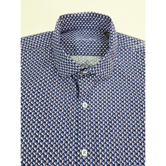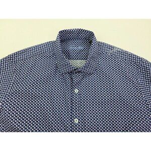 Tasso Elba Size XL 17-17.5 Black Blue White Lavender Ovel Pattern Cotton Shirt