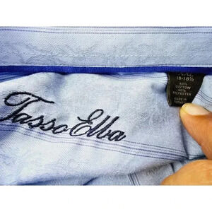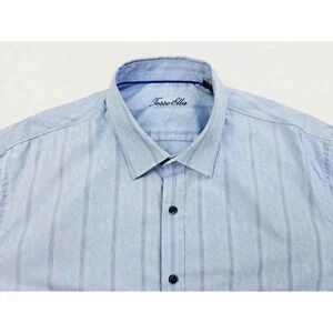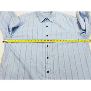 Tasso Elba Size XXL 18-18.5 Men's Blue Stripe Floral Pattern Long Sleeve Shirt