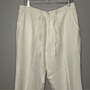 Tasso Elba Spa 100% Linen Pants Women Medium Flap Pockets White Drawstring
