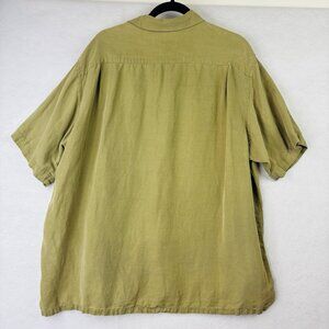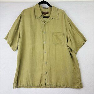Tasso Elba Spa Shirt Mens XXL Green Silk Linen Blend Short Sleeve Button Down
