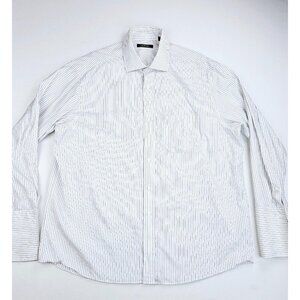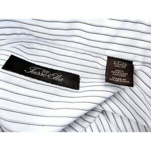 Tasso Elba Spa Size 17.5 34-35 Egyptian Cotton White Black Tan Trim Ftench Cuff