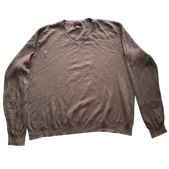 Tasso Elba Sweater Silk Cashmere Brown V-Neck Chevron Pattern Knit Pullover XXL