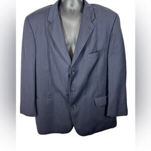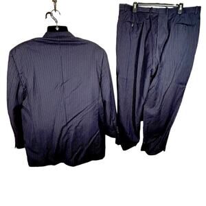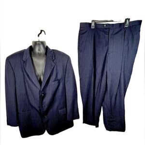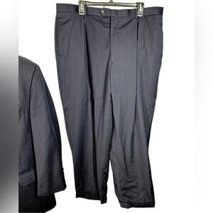 Tasso Elba Two-Piece Navy Pinstripe Wool Suit 48R Jacket 42 Pants Italian Wool