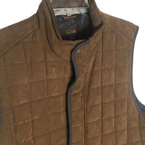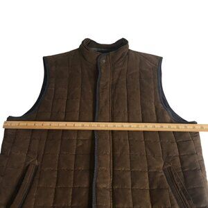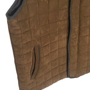 Tasso Elba Vest Mens XL Brown Faux Suede Quilted Insulated Snap Front Pockets