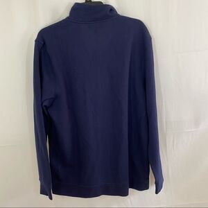 Solid navy color 1/4 zip mock neck sweatshirt.