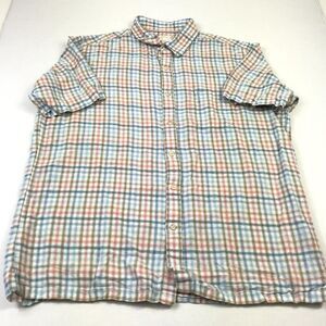Tasso Elba Island Mens Button Up Shirt Plaid Short Sleeve Linen Blend Top Large