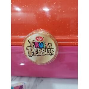 Very unique FRUITY PEBBLES themed Caboodles makeup carrying case - case is in gently used condition, has some scuffs and scratches, light wear throughout. The makeup pallet is still brand new / unopened. Sticker sheet shows light wear but is complete
