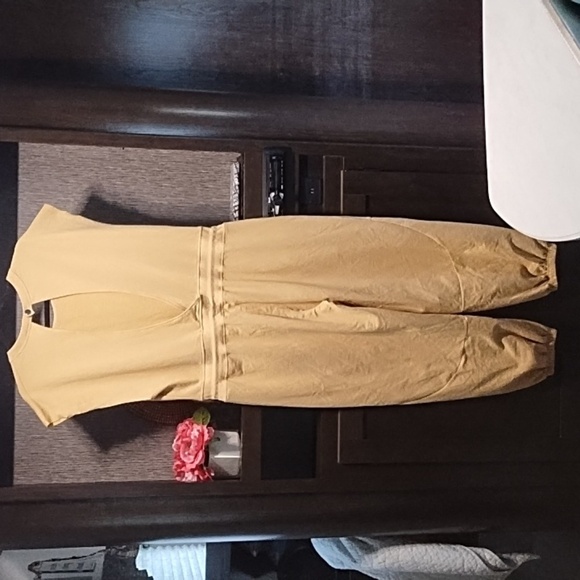 Taste Jumpsuit Open Back Sleeveless String Tie Waist Gathered Ankle Size M Beige Yoga Exercise Outdoors Casual