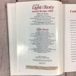 Taste of Home’s Light & Tasty Annual Recipes 2002. This hardcover book features 502 delicious recipes. More than half of the recipes are shown in full color in this 288 page book. This book contains 15 chapters so you’ll be sure to find some new family favorites to enjoy for many years to come. Smoke free home.