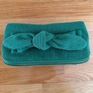 Tata Harper Green Corduroy Cosmetic Jewelry Tote NWOT