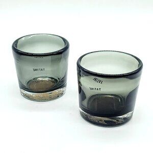 Set of two (2) smoky grey glass votive candle holders from Tatine.