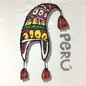 Tatoo Peru Souvenir White Cotton T Shirt Men's / Women's Small Tourism Multicolor Peruvian Hat Chullo Print