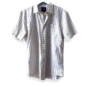 Tattersall London Button Down Shirt Mens XL Blue Yellow Plaid Short Sleeves