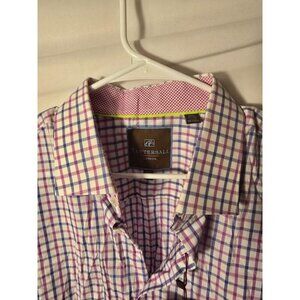 Elevate your wardrobe with the Tattersall London Men's Plaid Dress Shirt. Embrace the essence of spring with its vibrant multicolor pattern, perfect for adding a pop of personality to your formal attire. Tailored for a comfortable regular fit, this shirt features a classic button-down collar and long sleeves, ensuring a sharp look for any occasion. Crafted with attention to detail, this size 17.5 shirt boasts a neat and crisp appearance, making it an ideal choice for both professional settings and social gatherings. The timeless plaid design exudes sophistication, while the London theme introduces an air of elegance, embodying a sartorial sensibility that's both modern and traditional.