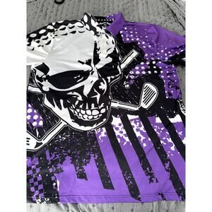 Tattoo Golf Blade Collection golf polo. Purple and black with a skull and golf clubs ad the crossbones. Good condition no holes or stains
