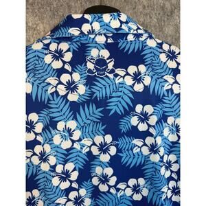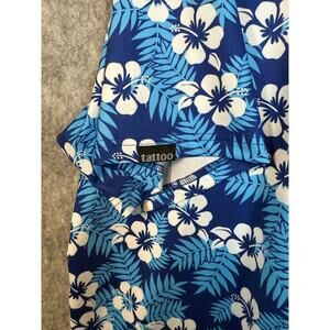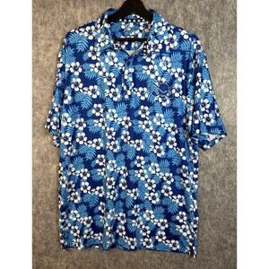 Tattoo Golf Men’s Large Aloha Collection Blue Floral Hawaiian Cooling Polo Shirt