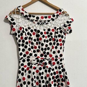 Tatyana Alika Retro Pinup Vixen Rockabilly Polka Dot Fit Flare Swing Dress Sz S