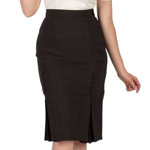 The Brooklyn high waist pencil skirt with front kick pleats at the knees.