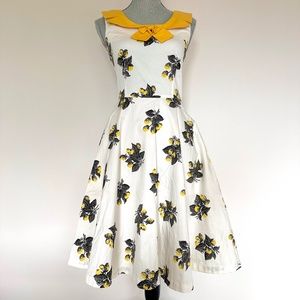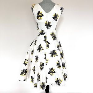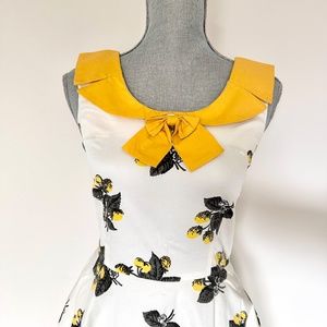 Tatyana white with yellow lemon fit and flare dress. Size small
