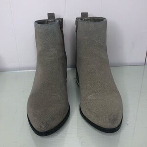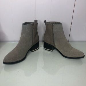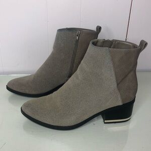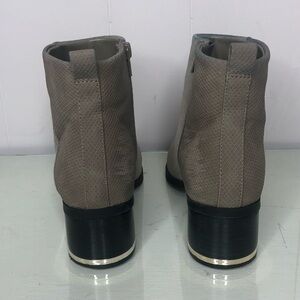 Taupe color ankle boots with mixed fabric for a great texture look and style.