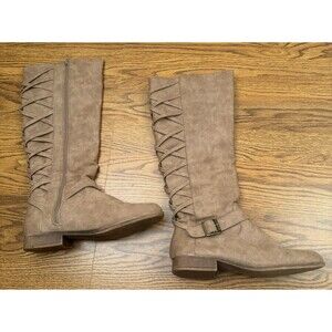 Taupe Brown Knee High Boot Luna Corset-Back Women’s US 8