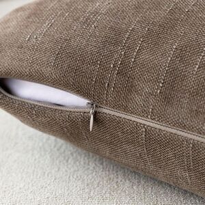 Elevate your space with this set of two new, modern throw pillow covers. Made from a durable and skin-friendly faux linen chenille, these covers are soft to the touch with a unique slubby texture and a subtle sheen. The timeless taupe color and solid design make them a versatile and cozy addition to any room. This is a pack of two pillow covers only; no inserts are included.
