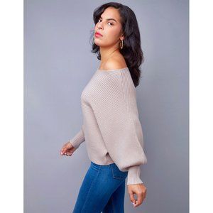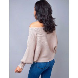 Taupe Dolman Sleeve Ribbed Knit Sweater Top