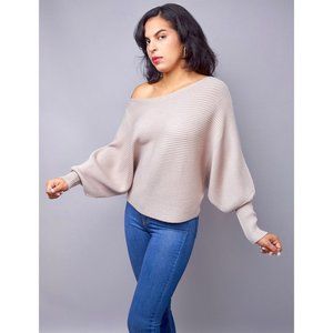 This ribbed sweater top is crafted with midweight knit to create a relaxed, loose-fitting bodice that provides comfort throughout the day. The versatile bateau neckline can be styled to display an off-the-shoulder look or the classic boatneck design and complemented by long balloon sleeves with wide ribbed fitted cuffs. This fashionable, versatile sweater top provides luxurious comfort and a beautiful silhouette.