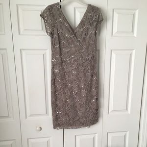 Taupe fitted dress with sequin accents - Can be worn to a party or wedding! Must see!