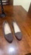 Brown slip on faux suede flat shoes with brown stitching detail, nice padded insole, rubber outsole — worn gently once, excellent condition Sz 8.5