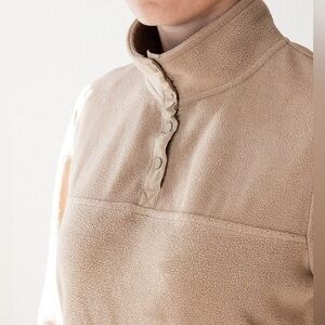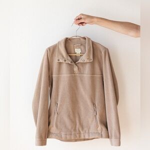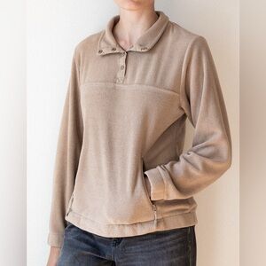 Taupe Fleece Pullover Sweater with Buttons and Pockets