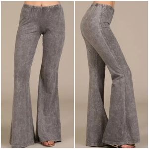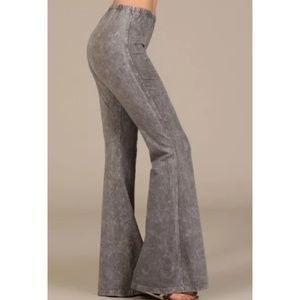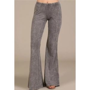 Taupe Gray Boho Mineral Wash Flared Stretch Pants