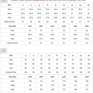 How to Choose Size: Please refer to Our Size Chart Picture which follows dress images. If you want the dress to be customized, choose the size closest to your own size and send the measurements of bust, waist, hips, hollow to floor, height and heels.