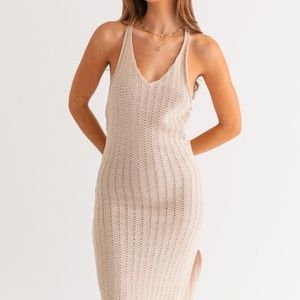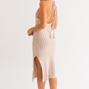 This taupe midi dress is light weight and perfect for vacation or summer party on the beach.