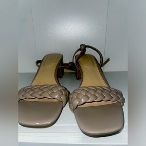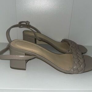 Taupe Heels🩶braided block heels gray heels ankle strap open toe chunky heels