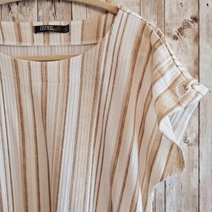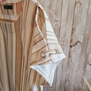 Taupe & Ivory Striped Short Sleeve Top Medium By Cure