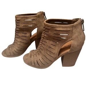 Keywords: Peep Toe Booties, Ankle Boots, Booties, Cutout Boots, Block Heel, Taupe Boots, Women's Boots, Casual Boots, Fashion Boots, Open Toe Booties, Faux Suede