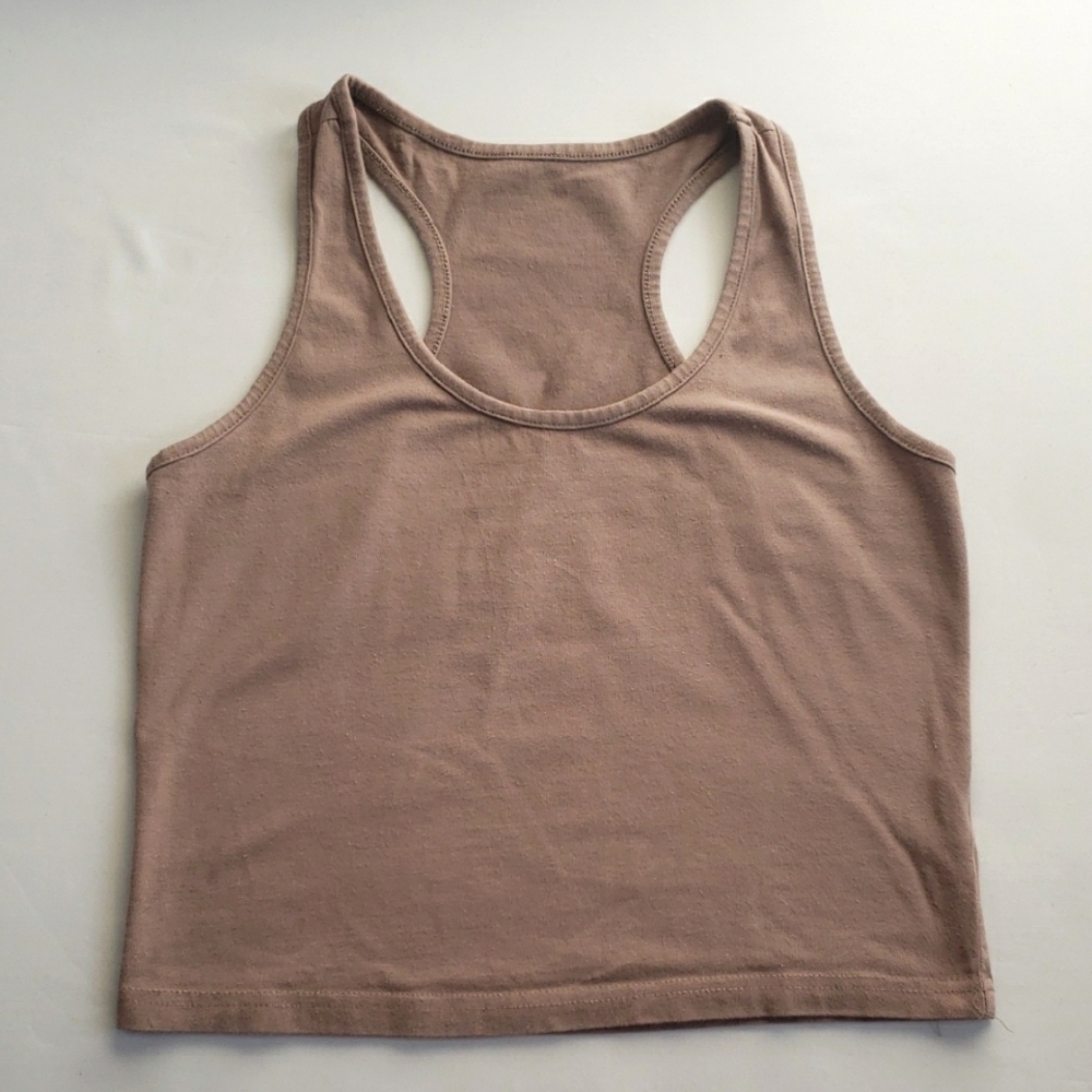 95% Cotton/ 5% Spandex Taupe, racerback, crop tank