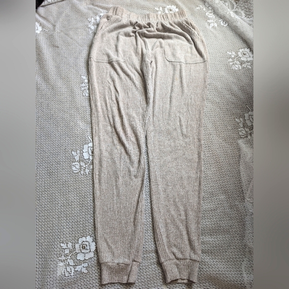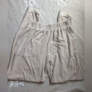 Comfortable taupe ribbed jogger pants. Perfect for casual wear. Soft and cozy.
