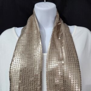 Taupe Sequin Scarf Raw Edge Glam Party Holiday Sparkle Shimmer Rave Disco