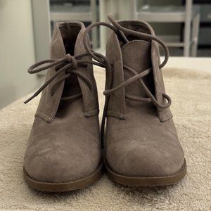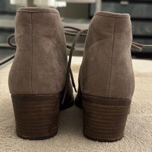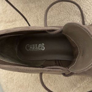 Taupe Suede Booties Women 7.5 M Carlos "Graham" lace-up tan boho ankle boot