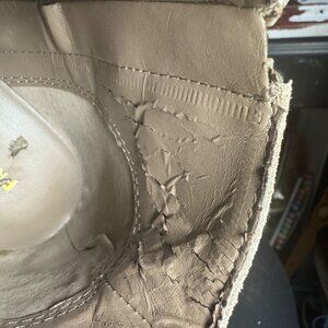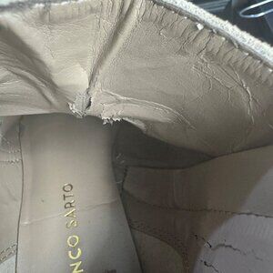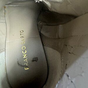 Taupe Suede Faux Leather Strap Wedge Boots Size 7 Franco Sarto
