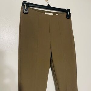 Channel your inner Audrey Hepburn with these peg leg Taupe Vince Flat Front Skinny Split Ankle Trousers. Add a mock neck short sleeve skinny rib knit top and take your inspo all the way.