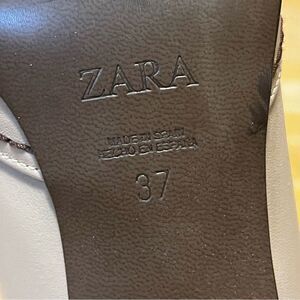 Taupe Zara Women’s Heels size 37 Gold Tone Metal Detail. Contrast Stitching