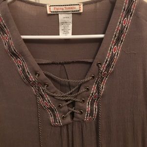 Taupe lace up bell sleeve top