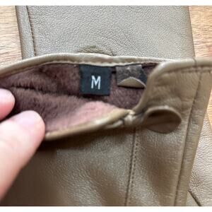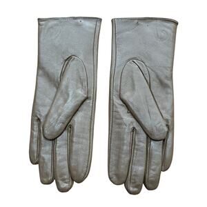 Taupe tan ladies leather gloves sz M classic mid century formal style fur lined